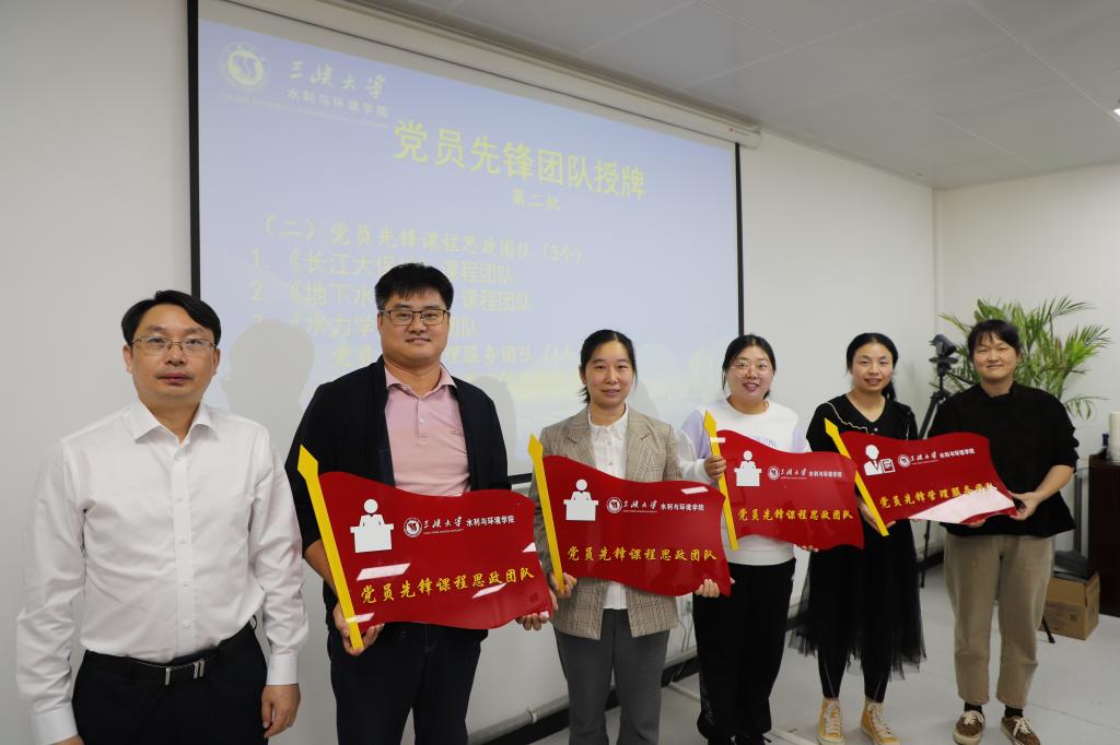 工程中心在本次“一融双高”工作推进会上载誉满满,科研方面石小涛教授引领的鱼类过坝技术团队、杨正健教授引领的黑臭水体治理与河湖生态修复团队荣获党员先锋创新攻关团队,中心《长江大保护》课程团队和《水力学》课程团队荣获党员先锋课程思政团队,水环学院班子成员各优秀团队授牌(旗)。