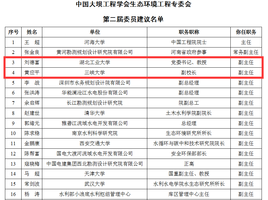 2023年11月26日,工程中心主任黄应平教授、技术委员会主任刘德富教授参加中国大坝工程学会生态环境工程专委会换届大会,被推选为中国大坝工程学会生态环境工程专委会副主任。此外,此外工程中心副主任王从锋教授、纪道斌教授和夏振尧教授也当选为中国大坝工程学会生态环境工程专委会委员。