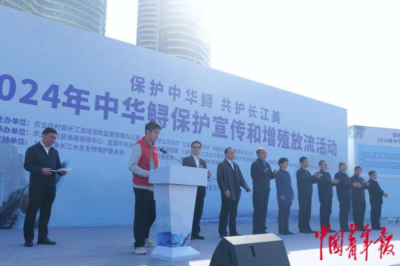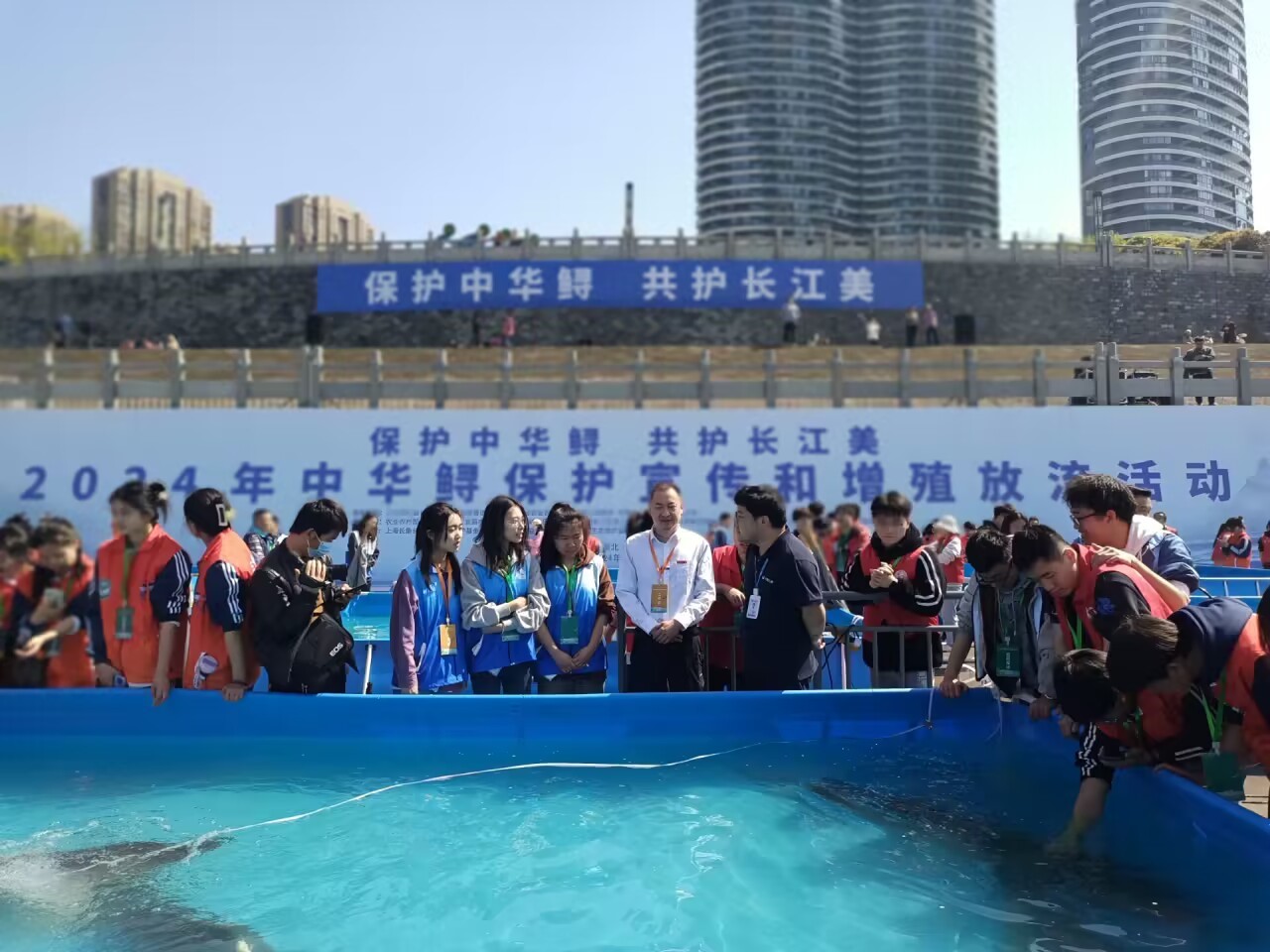 由农业农村部长江流域渔政监督管理办公室、湖北省农业农村厅、宜昌市人民政府、中国长江三峡集团有限公司主办;农业农村部渔政保障中心、宜昌市农业农村局、三峡集团团委、三峡集团长江生态工程中心、中国水产科学研究院长江水产研究所、全国野生动物保护协会水生野生动物保护分会承办的“2024年中华鲟保护宣传和增殖放流活动”于3月28日在宜昌市胭脂园长江珍稀鱼类放流点举行。中心副主任石小涛带领三峡大学近百名大学生参与到中华鲟增殖放流活动中,其中三峡大学益心“鲟”豚志愿服务队积极担任了本次放流活动的志愿者,首批20万尾中华鲟成功放归长江,为长江中华鲟物种资源再作补充。该项活动得到了中国青年报等媒体的关注。