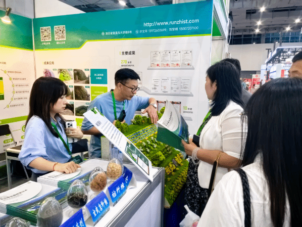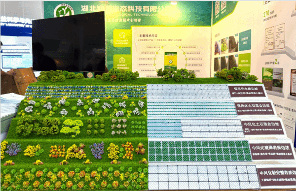在本次展览会上,团队重点展出了最新研发的“润智生态剂”产品,同时结合五级边坡工程-生态-景观一体化模型展示了CBS植被混凝土生态防护技术、VCS植生水泥土生境构筑技术的生态修复成效。这些内容全面呈现了边坡生态修复领域的新技术、新产品、新工艺与新设备,吸引了众多国内外行业专家、学者和客户前来参观并深入交流。