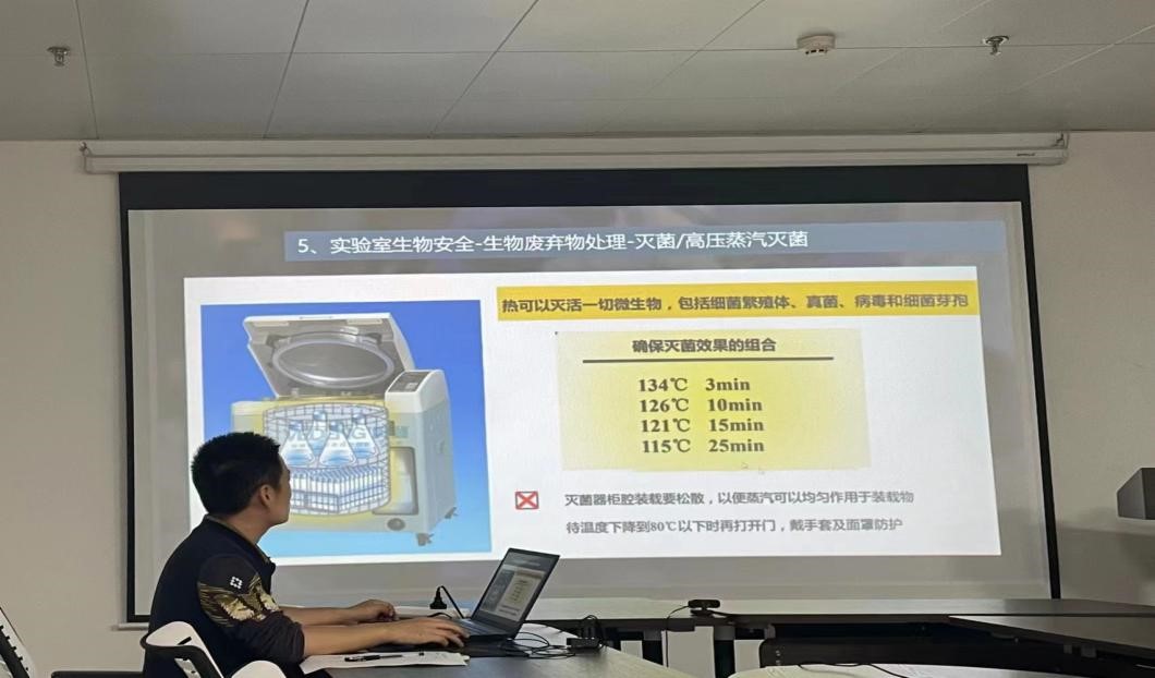 最后,袁喜老师针对我所在废物管理方面进行讲解,涵盖废物的分类、收集、储存和处置等各个环节。他强调了废物分类的重要性,要求我们对实验室产生的废物进行科学分类,以便后续的收集、储存和处置工作更加规范和安全。